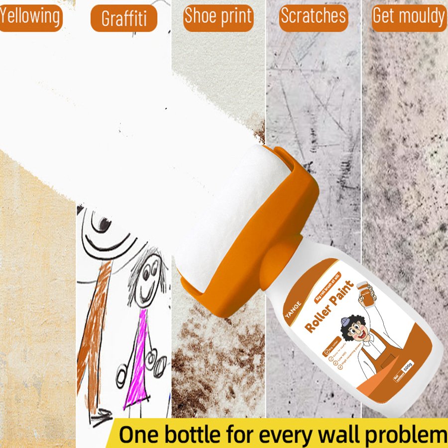 3、GENTLY SQUEEZE THE LATEX PAINT TO MOISTEN THE ROLLER HEAD EVENLY. AFTER THE ROLLER HEAD IS MOISTENED EVENLY, PAINT THE PARTS THAT NEED TO BE PAINTED